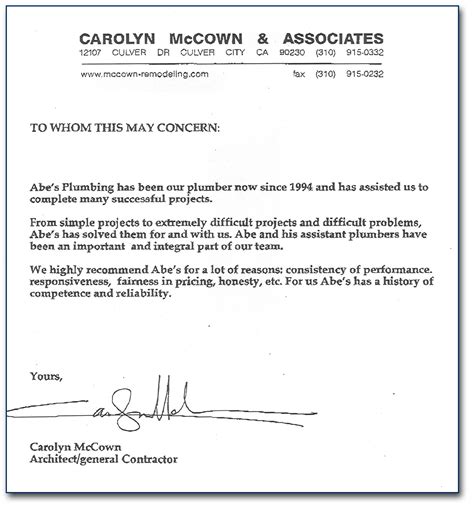 Download sample recommendation letter for plumbing Paperback BookBoon